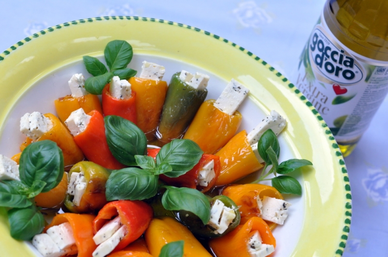Papryczki nadziewane serem feta w oliwie Extra Vergine Goccia d’oro.