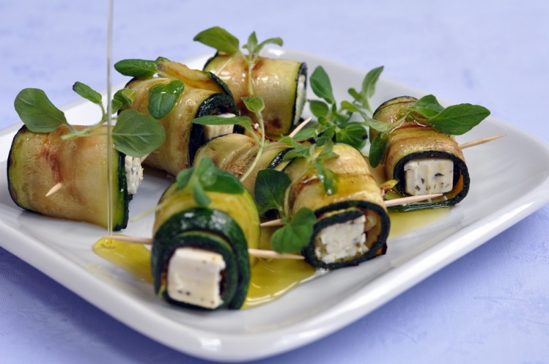 Koreczki z cukinii z serem feta polane oliwą Extra Vergine Goccia d’oro