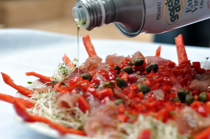 Carpaccio z polędwicy z tuńczyka z sosem z oliwy Extra Vergine Goccia d,oro