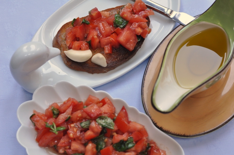 Bruschetta z pomidorami, bazylią i oliwą Goccia d’oro